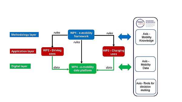 The main challenge is to merge in a unified way, in the same digital platform, technical and humanities data on e-mobility. The ongoing practices of data collection of the different disciplines will be revisited to comply with the defined indicators and to enable a real coupling of technical and humanities data. Moreover, the digital architecture and the multi-visualization of data and indicators, will be considered from the definition of the common framework to enable a relevant and fluent management of these heterogeneous data. In a top-down phase, the developed framework will be applied on driving and charging use cases to deploy the open data platform. In a bottom-up phase, the collection and digital platform experiences will enable feedback to refine the multidisciplinary framework.